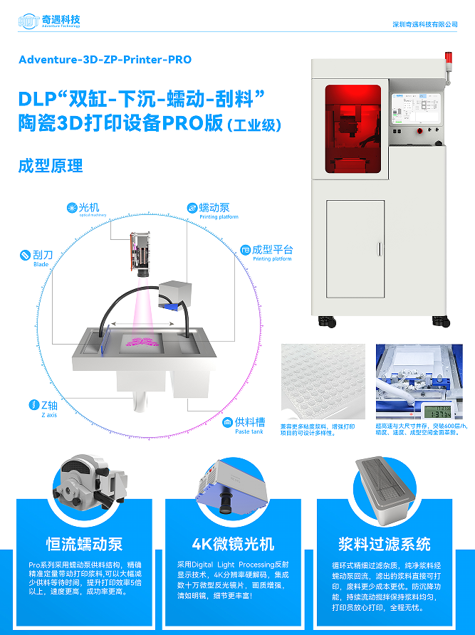 3D打印技术的出现实现了复杂结构陶瓷的快速制备。DLP数字光处理3D打印技术采用面曝光成形工艺、具有成形精度高、打印速度快、成本低等优势,可实现高精度、高性能的多孔结构和复杂薄壁结构陶瓷件的快速制备,从而实现稳定的力学性能和隔热性能。